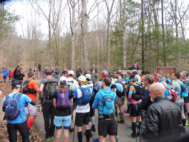 It was a leisurely drive to Frozen Head State park where we met up with Matt, Ellie and also Pavel Paloncy who was also doing the Barkley this year. Lots of runners and support were mulling about waiting for Registration. I spoke to Billy Reed from Ireland - who I had been messaging and looked for any prospective Veteran that might be might be my pace! Registration opened about 3pm and I was one of the first to meet Laz and present him with my number plate - M29 EAT which had come off a landrover we had owned about 10 years ago. Laz laughed at the MEAT bit which was nice. The map came out about 5pm and there was a mad rush to get the individual maps marked up. I spent ages marking the maps up and reading instructions but in hindsight could have done it a lot more efficiently! Not knowing when Laz might blow the conch it was 9pm bed in the cargo van for me. Steve came into the van as well and he soon fell asleep. But not me. I listened to campsite noises and thought about everything else in an attempt to relax. I did sleep a little in the end and was surprised when it was 7am. I went for a shower and had breakfast. Still no conch. Then at 8.18am Laz blew the conch. The next hour went very quickly but I was ready for the off.