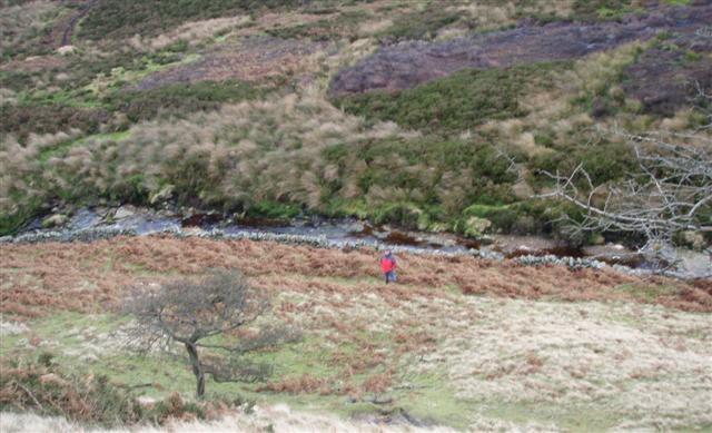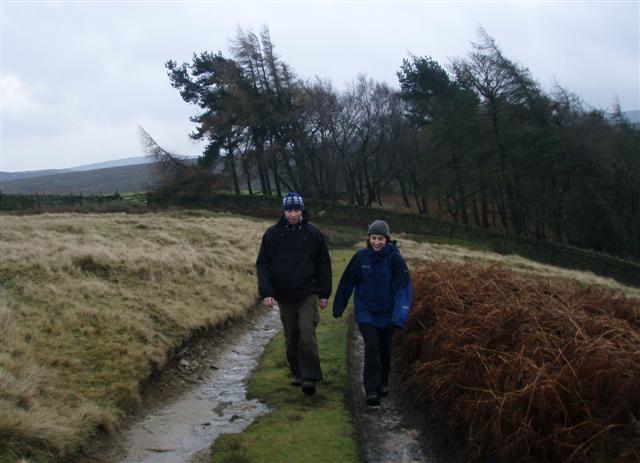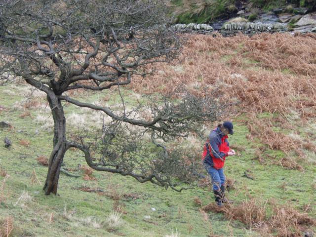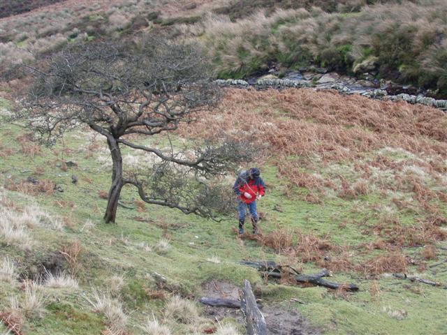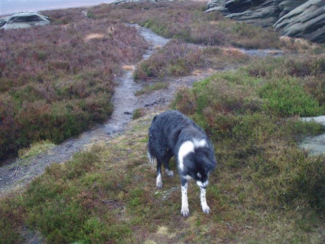 New Year's Eve saw a number of walks on offer however with Charlie and Carol full of cold we opted for the shorter, valley route near Langsett. While waiting for us this is Steve "investigating" something .....