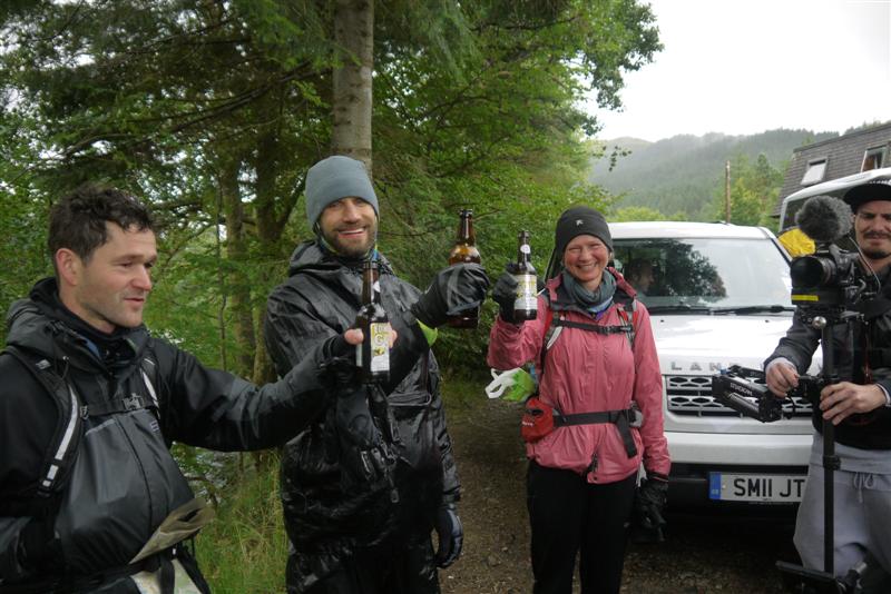 The Canadians; This attempt was part of a Boundless film programme who had approached Charlie Ramsay looking for support. He along with Jon Gay had organised all the support and logistics for them. Simon Donato and Paul Tribilcock had set off at 12 noon on the Saturday and I was scheduled to support them on their Leg 3 (as they were ACW) from Fersit (ETA 2am) back to Fort William. So we quickly changed and had hot food and lots of tea before trying to sleep. The support arrived at 1am and we roused ourselves and had breakfast! Apparently Paul was pulling out and Simon was 30 mins down. He arrived looking strong but now about 45 minutes down. I met the other support, Jon Gay, Helen Wise and Lisa Gamble.