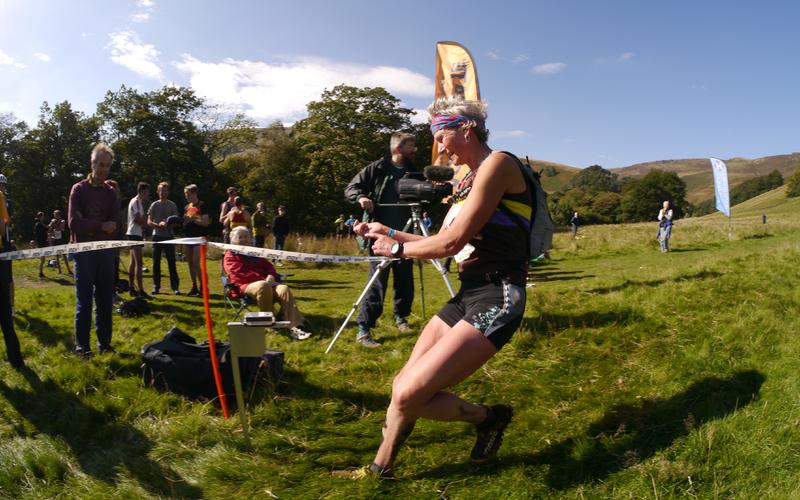 Leaving Mam Nick I had drunk about 600ml and had 200ml to get me to the finish. I knew I was liable to get cramp and it soon came on - first in the calves, then thighs, then hamstrings! I have this theory that once it has come in one muscle and you have run through it ... it doesn't return there. So once I had done both calves, thighs and hamstrings by Ringing Roger I was hopeful that I could descend to the finish without cramp! I had been overtaking people since Brown Knoll and was now 7th Lady with Heather just in front. I had a good descent to the finish but couldn't catch her!