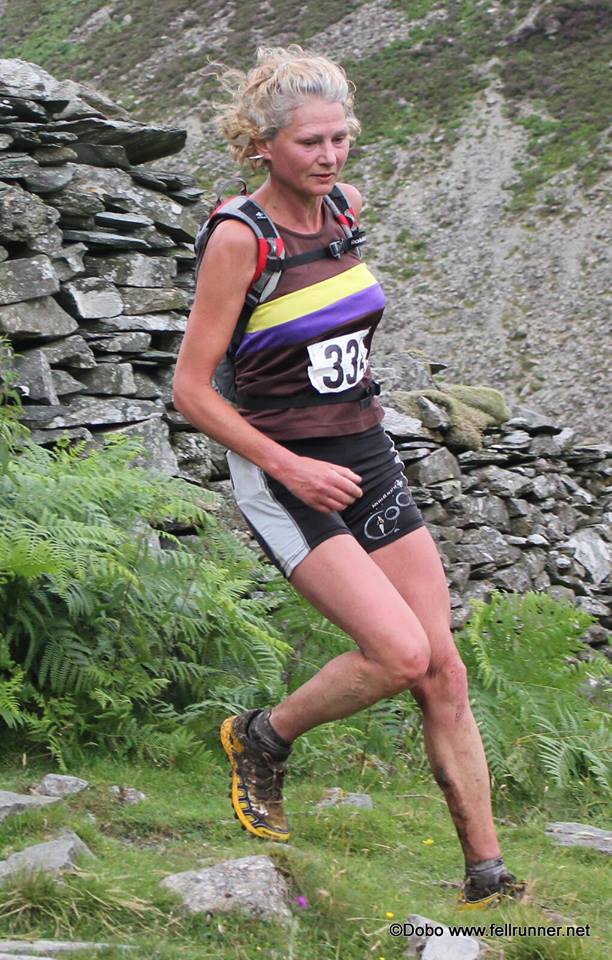 11th June - I had a good run at Ennerdale last Saturday. It was hot and I set off steady carrying water and a spare bottle. I have had a nightmare on this race in the past when I've run out of water and so was determined not to. My plan worked a treat filling both bottles at Kirkfell which lasted me to the finish. I enjoyed all of the race as you can see from the photo! I finished 3rd Lady just behind Heather Marshall (Dark Peak) in 4.50 and was 1st Vet.