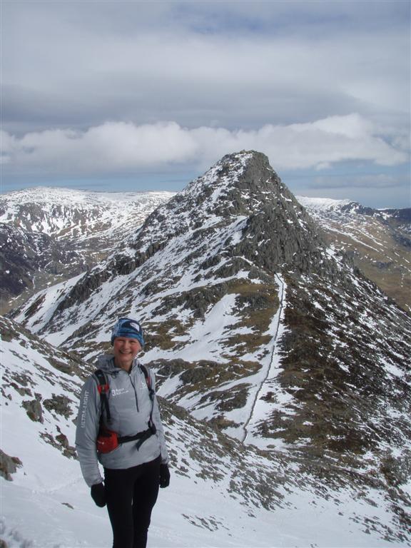 Steeple emerging from the clag Me trying out my new OMM thermal top on Red Pike