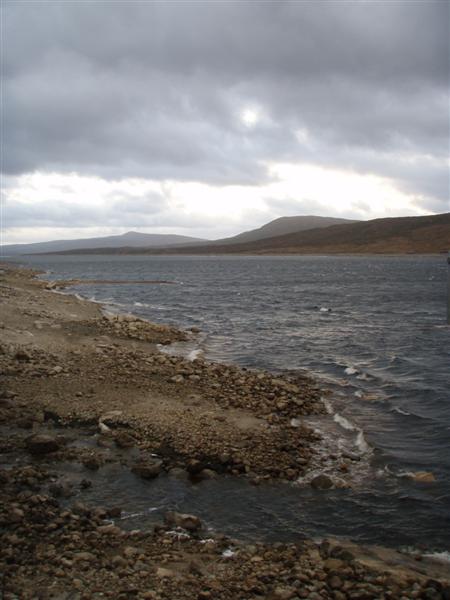 On Sunday we got up, packed up and then walked out. It had snowed overnight and the weather was very windy but dry. The forecast was for rain at 1pm and that is what we got - just as we arrived back at Kinlocheven! This is graveyard we passed near Blackwater Dam and all the people died in 1908 we assume working on the dam. The other photo is Blackwater Resevoir. We followed the conduit down which was very pleasant as it is covered and so had a lovely gentle gradient to walk on - until it plunged down the hillside and we followed the track!