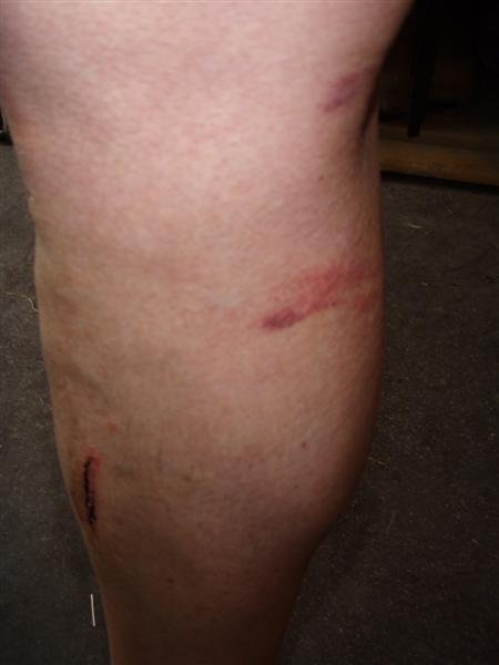 Today - Sunday 22nd - As always I walk round the cows. The dogs get excited and race about. Today however they raced into me. The pictures are the result - I wasn't happy as they completely took my feet out from under me, I landed banging my head and could only limp round the cows. Wisp hit the left leg and Paddy the right - Paddy now has a black eye! . However tonight I can walk and am hoping with rest this week that I'll be ok for the 10 Peaks Xtreme next weekend. I was in the tractor all morning but free this afternoon so have done my maps and schedule - it looks a right challenge!!