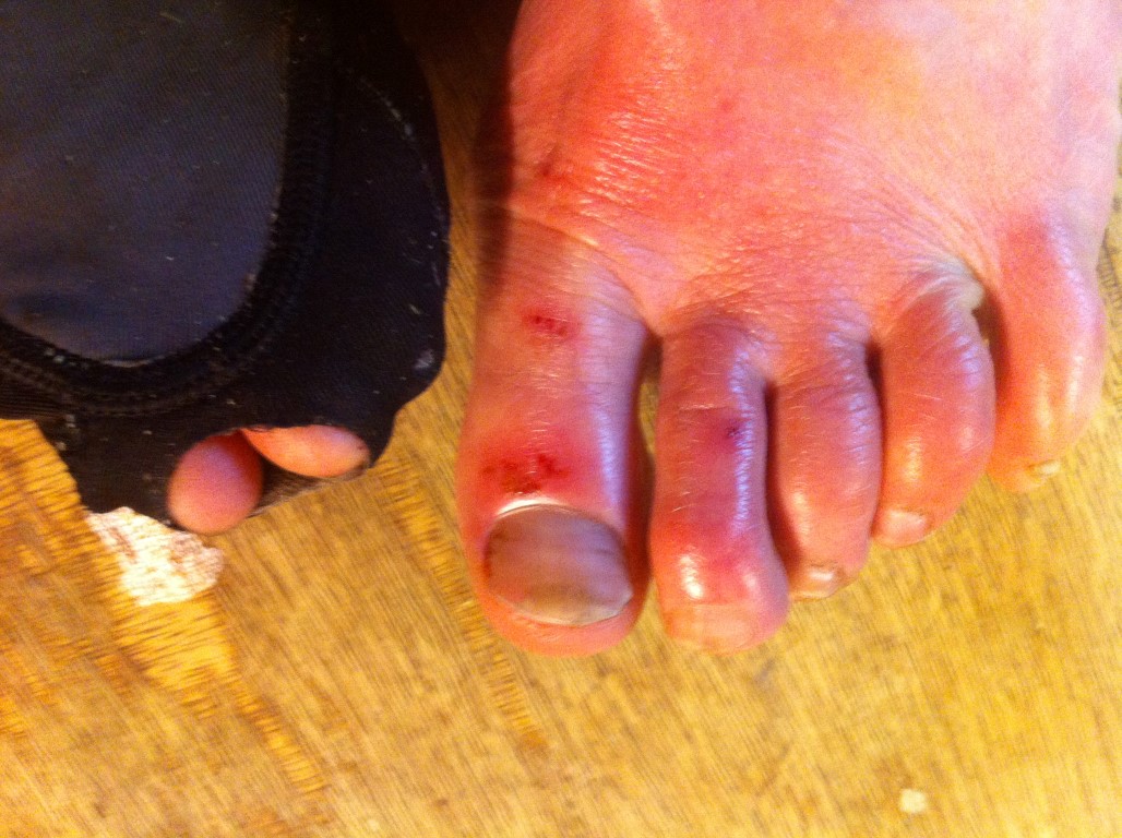 The swelling and bruising came out on Monday and Tuesday. I've been icing, resting, stretching it all week and it's a lot better now. But I've been sulking as again I can't run. Oh well. Enforced taper won't hurt I suppose.!