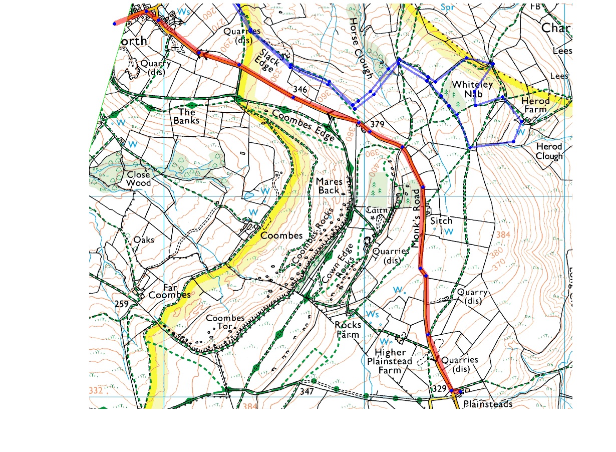 This I did then arrived very early so chatted to Jon at Pete Blands. I was thinking "This is going to be hell. A long runnable climb up the nab, a few fast loops and back". I even got so despondent as there were lots of good Dark Peak Ladies there that I thought "I wish I was mowing the lawns instead". So the race started; I took it steady up the first field, then the second field; the legs feeling heavy. Got to the third field and still climbing and the legs woke up and so did the lungs. I looked up; "Hey this is alright" I thought. I kept on going, passing loads of women (it was a ladies only race) and arrived at the top. Descending the legs were wobbly and I wondered whether that was me done for. But a little runnable climb, then a fantastic steep descent, a huge steep climb, and so on! The route had been changed from my map below but was great. Flying down the last descent I was happy but being chased by a U23 (with young U23 legs) - not good!! At least the Rugby club, about 100m flat running and I was done. 13th Lady in 45.23 mins. Judith Jepson just in front so I was 2nd counter for our team and we won the Ladies Team prize with Helen Elmore and Pippa Wilkie. Results; Up-the-Nab-Women.pdf and Up-the-Nab-Men.pdf