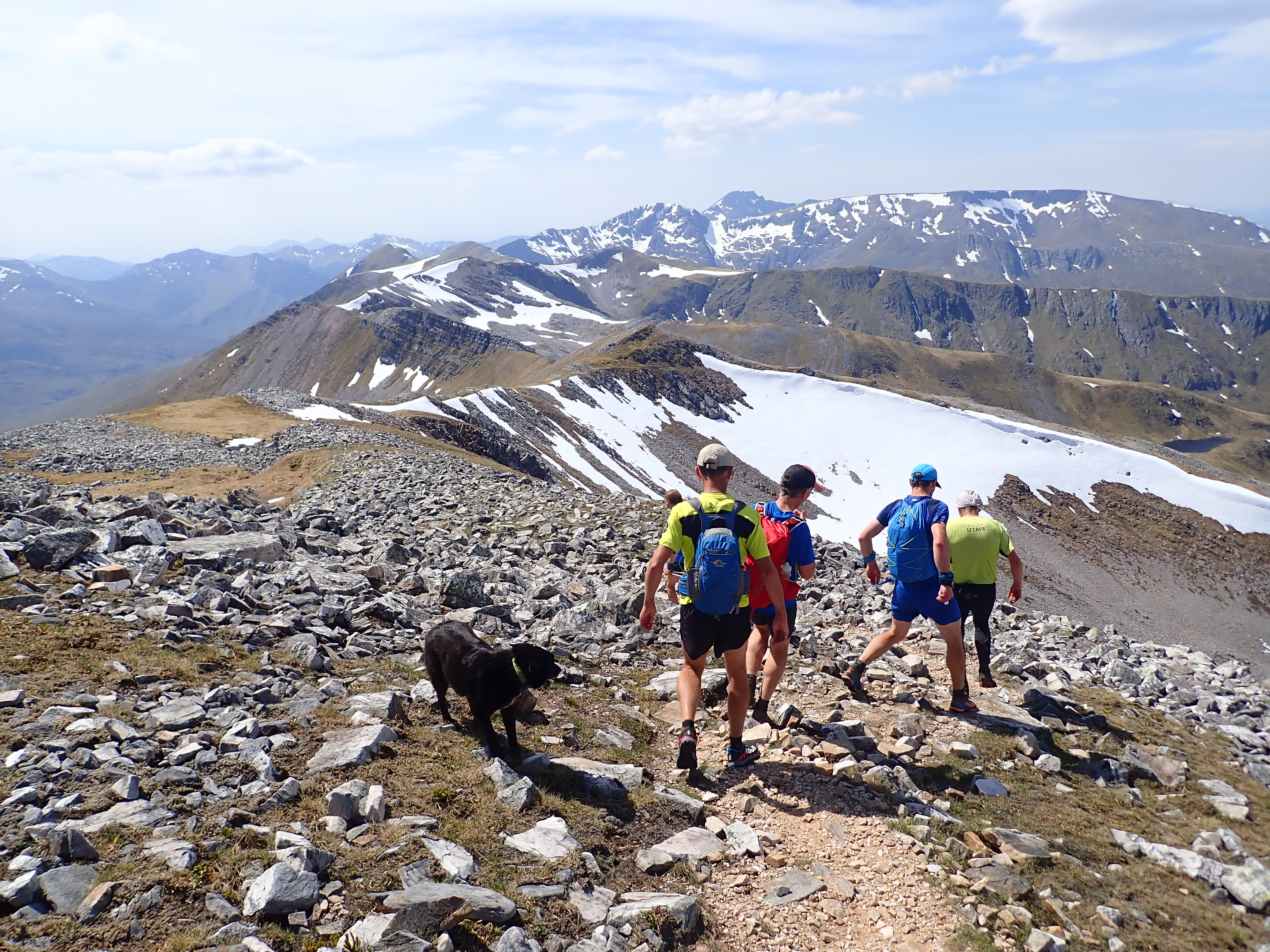 6th January - With a few people reccying the Ramsay Round it was a good excuse to visit and run in the Highlands again. I travelled up with Majka, Pez and Wisp to meet up with Jim Paxman and Tim Rippon. There was more snow than I have ever seen before but we made good use of our winter gear and the good weather and got three good days in. Not much distance was covered but we managed three Munros a day! Wisp was named the "Wisp the Wonder dog" by the end as she developed amazing snow running techniques. Photos