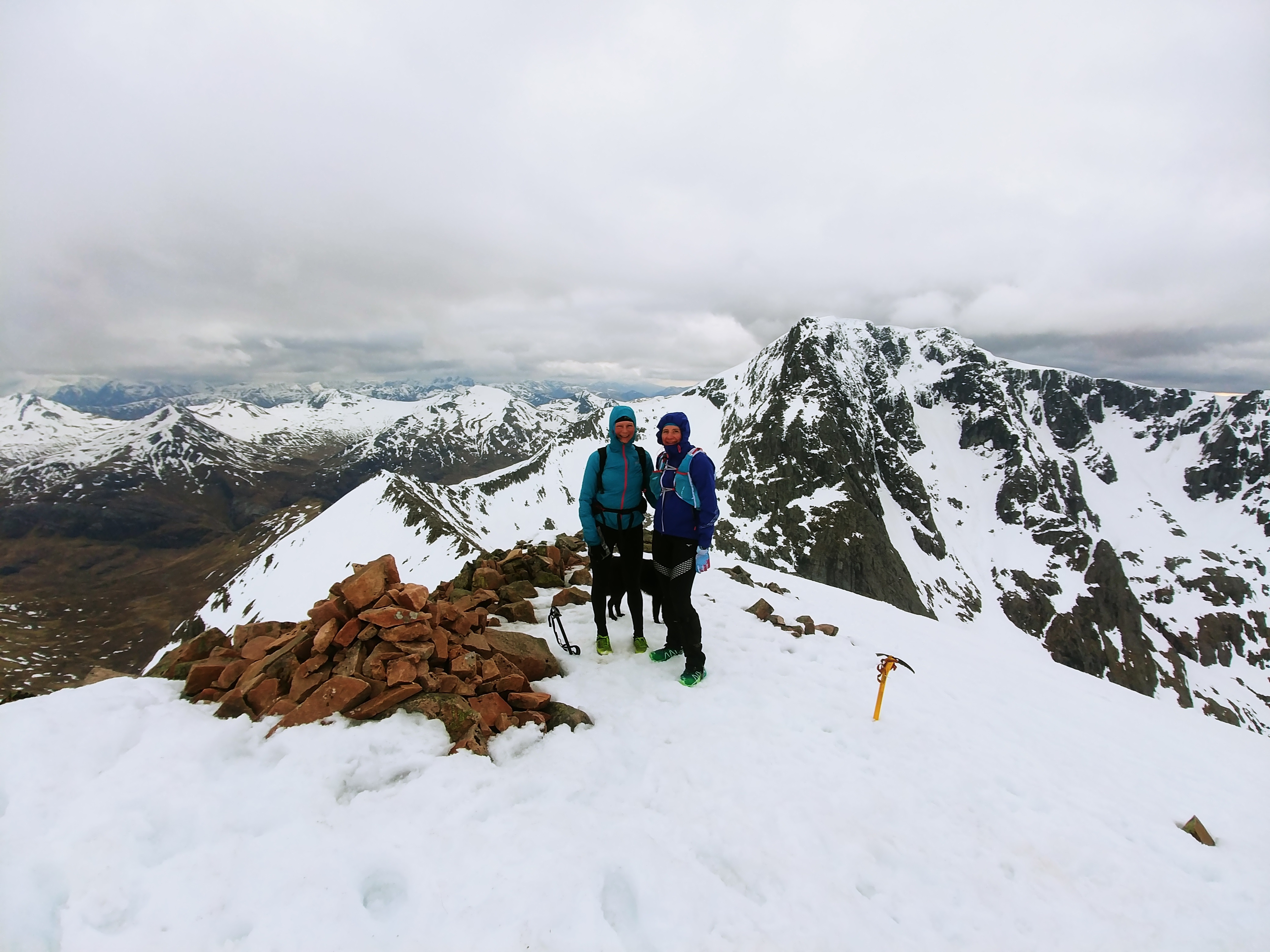 Last weekend I went to Scotland to do some long hills with Majka. There was still a lot of snow but it was perfect running snow !! I was dreading the floundering type but it was solid but with a melted surface so we got grip in Mudclaws and used the ice axes a lot. We were able to get two long days in covering 36 miles and 5950m climb. On the Saturday we met up with Helen Rennard and scrambled over Carn Mor Dearg arete after her! Poor Wisp was tired by this time and I had to help her over some rocks. I was very impressed at her. We finished off the day by meeting Nancy Kennedy and Keri for a pint and well earned tea. Photos