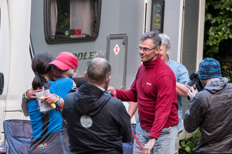 Leg 6 (b) Mark Harvey (4).jpg - Inspirational runner & breast cancer survivor during her 122-mile and 56,00 ft of ascent, DOUBLE Paddy Buckley Round in the mountains of Wales at the Aberglaslyn change over after 31 hours running.
