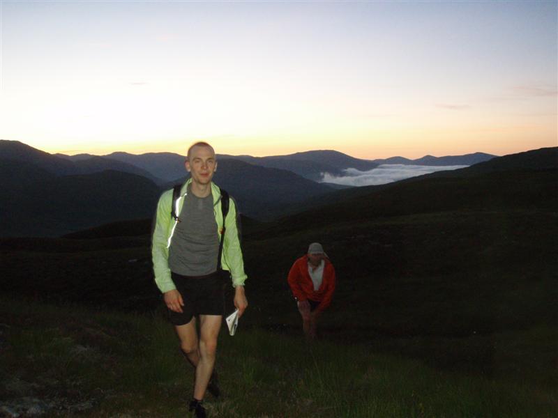 We settled down for a few hours sleep with me using spare clothes as my bedding but slowly donning them during the night as it dropped cooler. At 2am we roused and had tea and various food for breakfast while checking outside for head torches. About 3.45am torches were seen but when they arrived it was Paul Reeve now running with Lawrence (from Dark Peak) for support having lost his own somewhere. They had run overnight with Keith and Tom Westgate but Keith was now struggling and so they had been sent ahead.