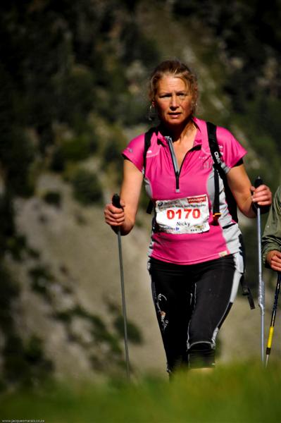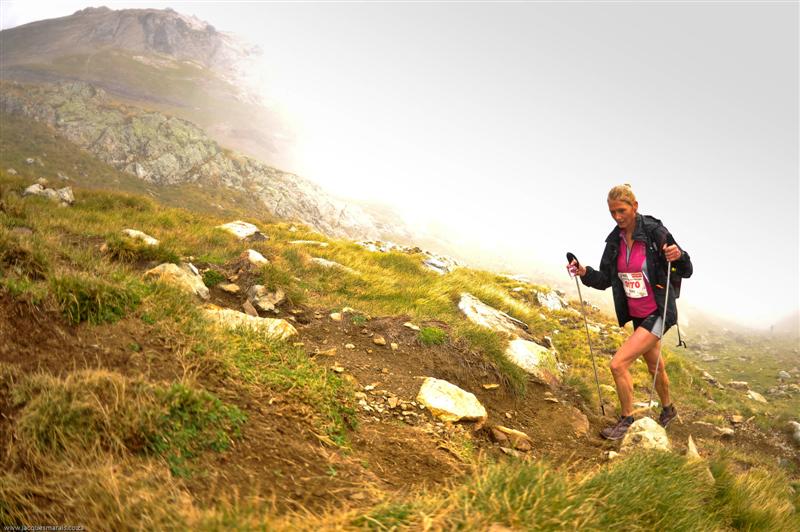 I walked into Tournaboup (time 06.49) knowing that I had to get a whole mousse down and more if I was going to have any chance of finishing. Charlie met me looking worried; the 2nd Lady was catching and had made up 15 mins on me. The mousse went down and tried valiantly to come back up but I was stronger. I even managed a few beans on top. Feeling decidedly light headed and sick I decided to make a start. Walking up the hill Charlie was being the elite supporter he is giving me all the words of encouragement I needed. He left me with a black coffee which I drank hoping it would wake me up. I took it steady though the 15 minutes of stomach upset that always followed eating anything. I thought about all the reasons why I should now push on. All the people behind me; Steve at home working; Charlie up all night supporting me; Carol his wife pregnant at home letting him come away with me; Amanda and Andrew Heading having enough confidence in me to sponsor me. I had to try for these people. I formulated a plan - I had to be stronger on the climbs; it is always my strength. With a huge climb of 1000m in front of me I would climb as hard as I could then hope I could descend well enough to hold my position.