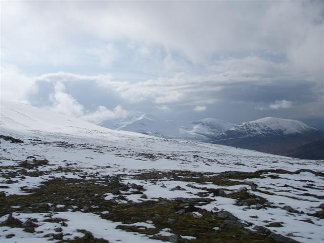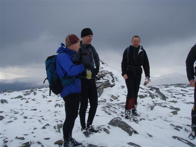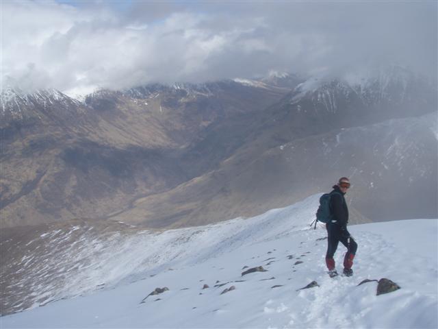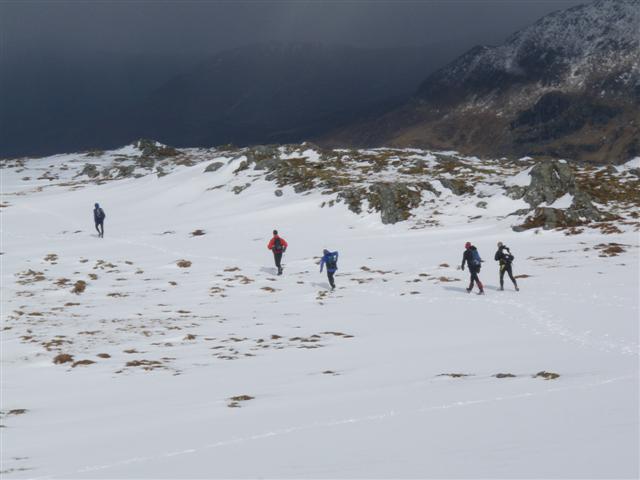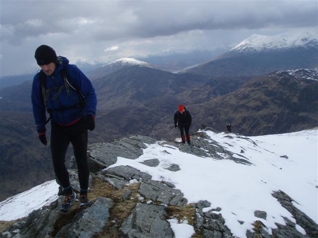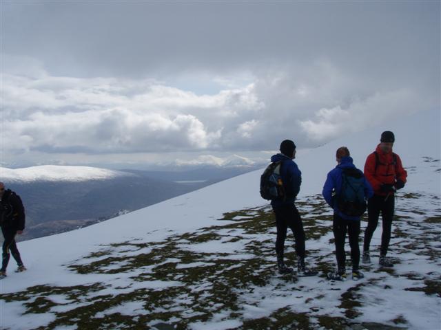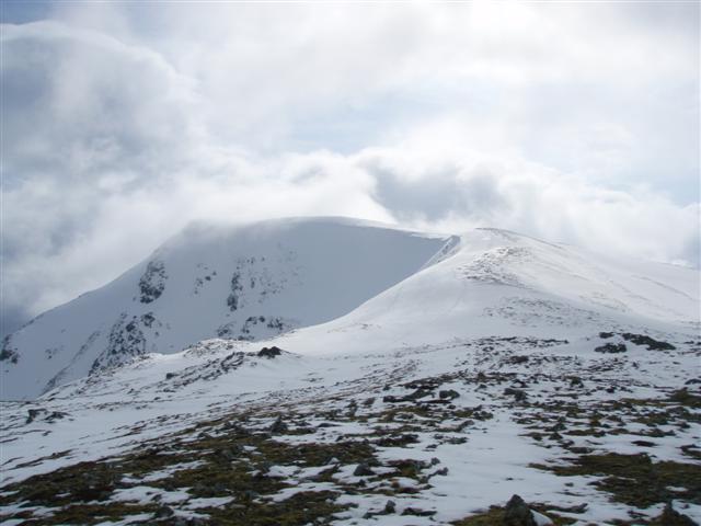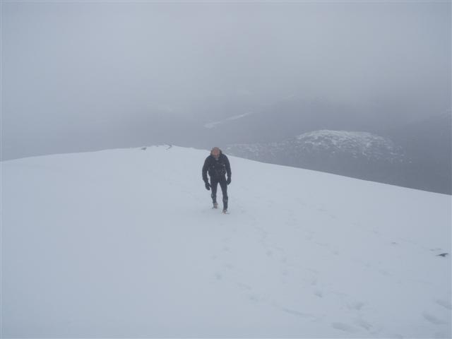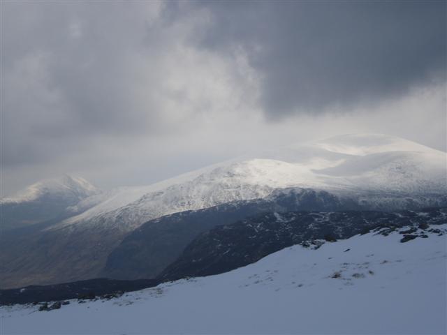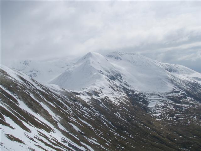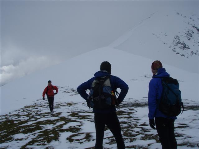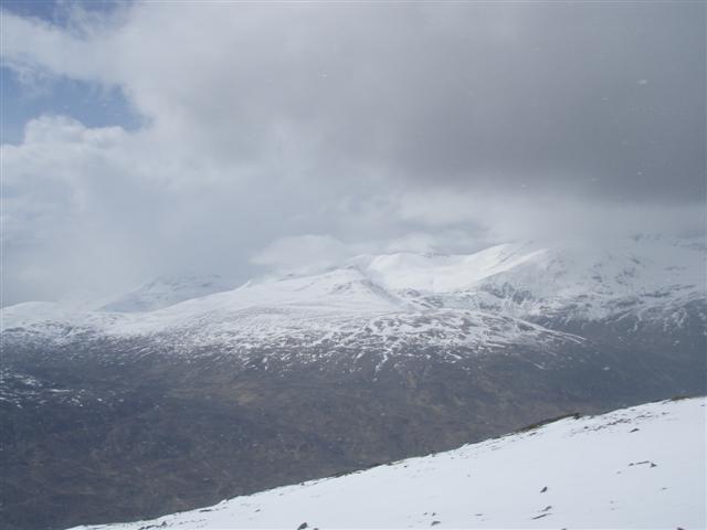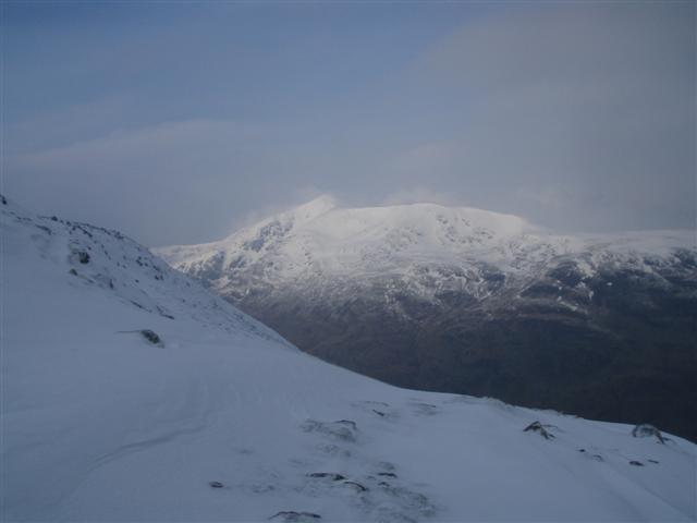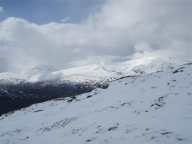 Lunch was taken in the normal place by the stream. Strangely all the rivers were very low and we did the river crossing without getting our feet wet. There is the normal steep slog up the heathery hillside then a trog up the ridge upto Bein na Lap which was slow going in the snow.