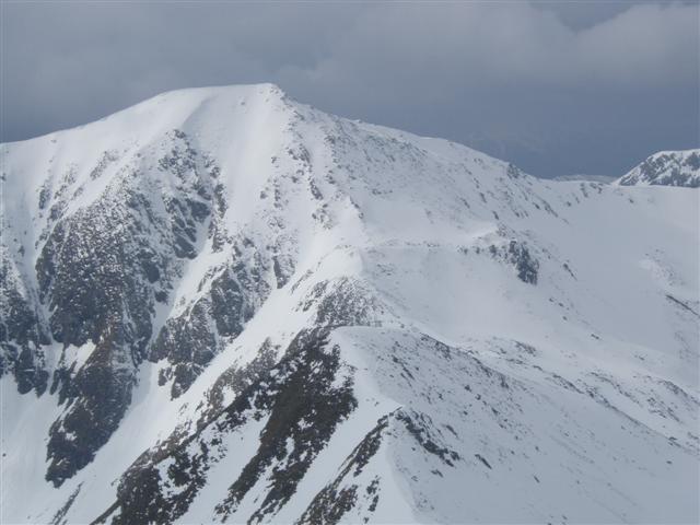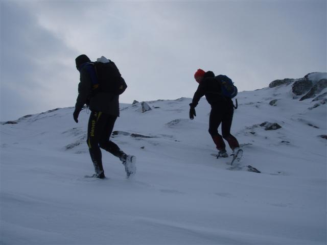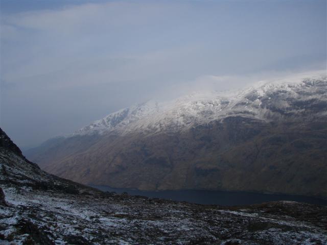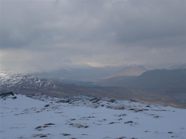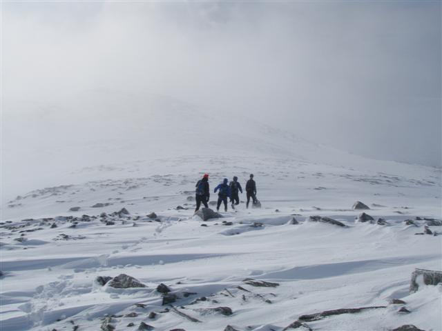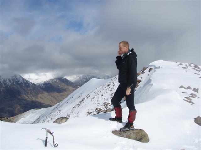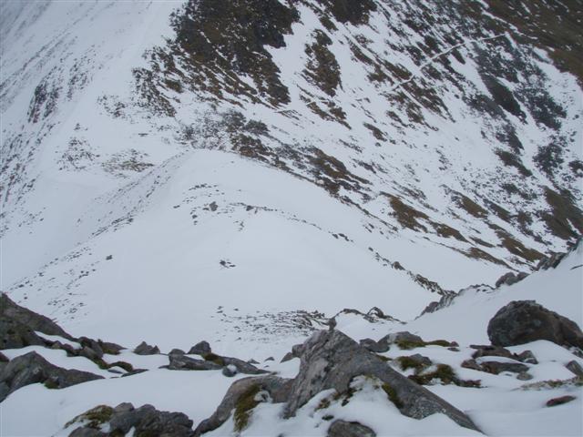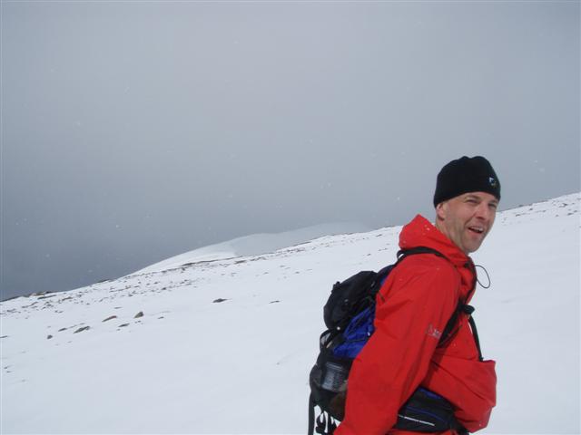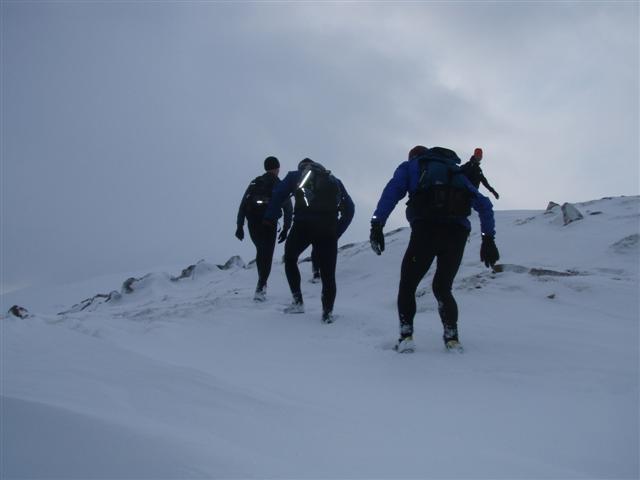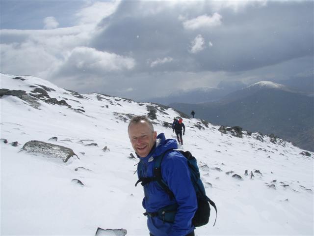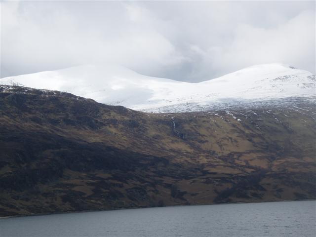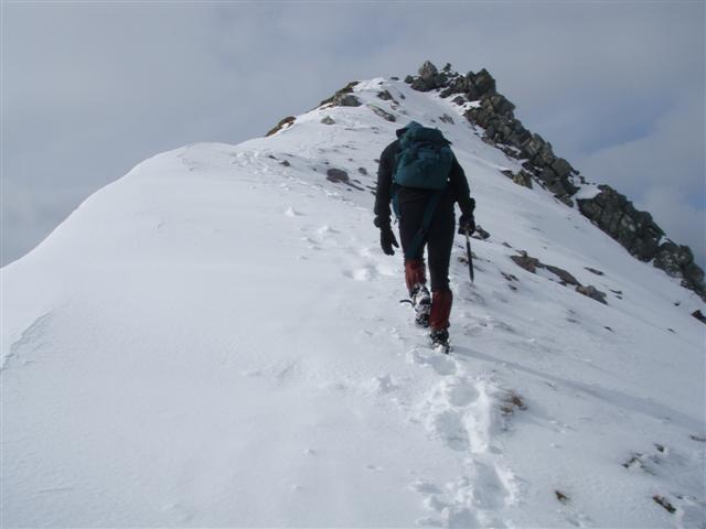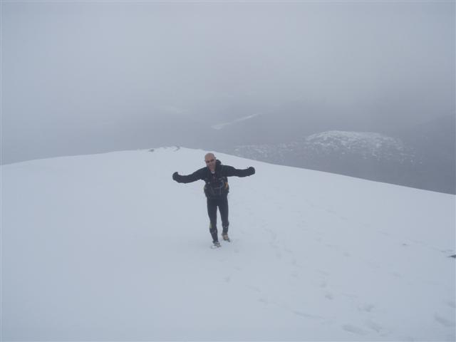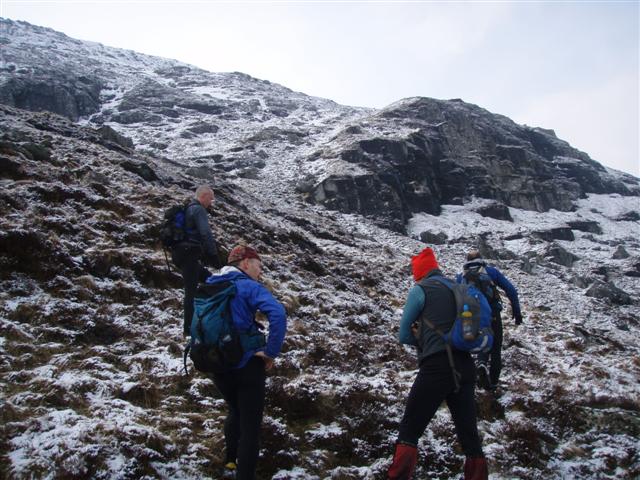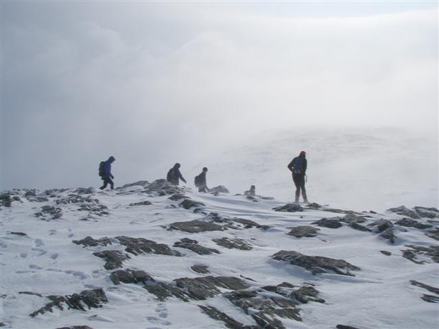 Lunch was taken in the normal place by the stream. Strangely all the rivers were very low and we did the river crossing without getting our feet wet. There is the normal steep slog up the heathery hillside then a trog up the ridge upto Bein na Lap which was slow going in the snow.