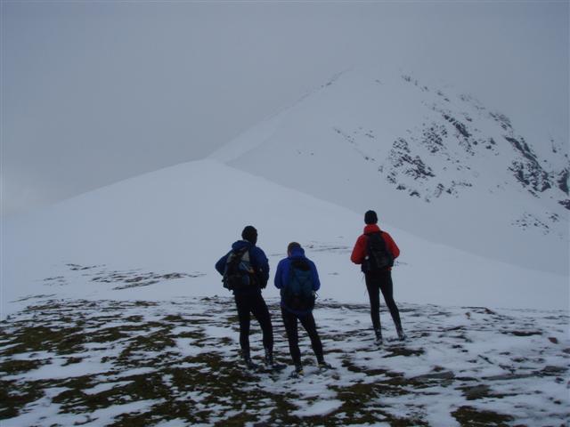 Abandoning timing as we were obviously going to be slow we continued onto Chno Dearg and then descended into the valley with the snow making the descent much nicer than normal!.