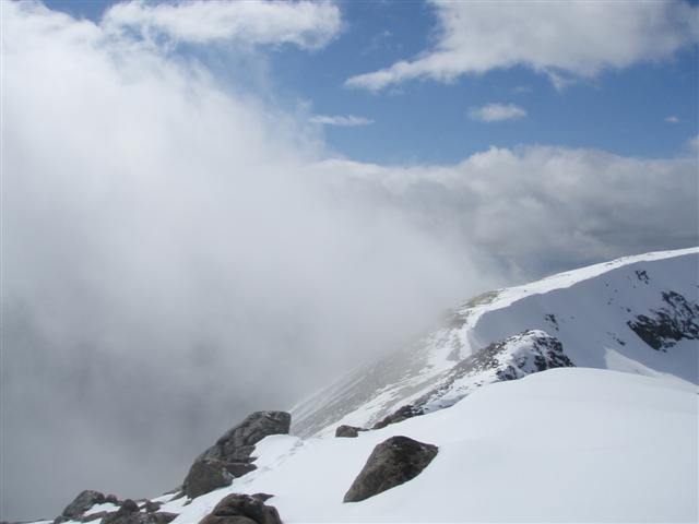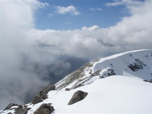 Then we just had Stob A'Coire Mhead and the long descent back to Loch Treig. We got to the top in cloud but  it was a complete whiteout as we descended off with me on compass and Ian Winterburn on GPS. As we dropped the cloud suddenly lifted and we all looked back up the way we had just come down.