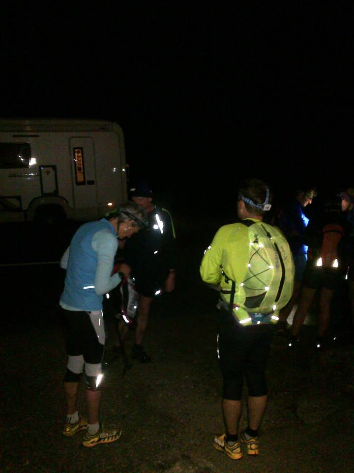 So at 7pm I said to Mary and Jon "Right, I'm just having gels and water now". Mary was fantastic; she was always there, by my side, handing me water or a gel. She scoured the support for gels and so always had one to hand. Sometimes I thought she must be running in thin air for the ridges are so narrow and I was on the path. Ian Fitz could be heard kept the route clear with authority, Simon Rippon was my lovely motivator; giving me a thumbs up and a smile with a floppy haired nod of head. Jon ran around finding all the lines, checking his schedule and taking it very seriously; much like me. Ali and Stevie floated; the camera being a welcome distraction but I haven't seen the footage yet so I might have been grimacing when I thought I was smiling.