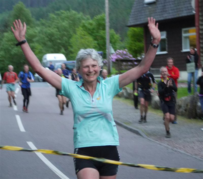 Running down the road I spotted the YHA and being spurred on by my support I lifted my legs and went for it. Charlie Ramsay had a tape for me to run through and so I did. "Arms up" says Charlie. What a star he is. I finished at 19 hours and 39 minutes. 45 minutes taken off the previous record. 2nd fastest time ever and now the only person to have completed all three rounds in under 20 hours.