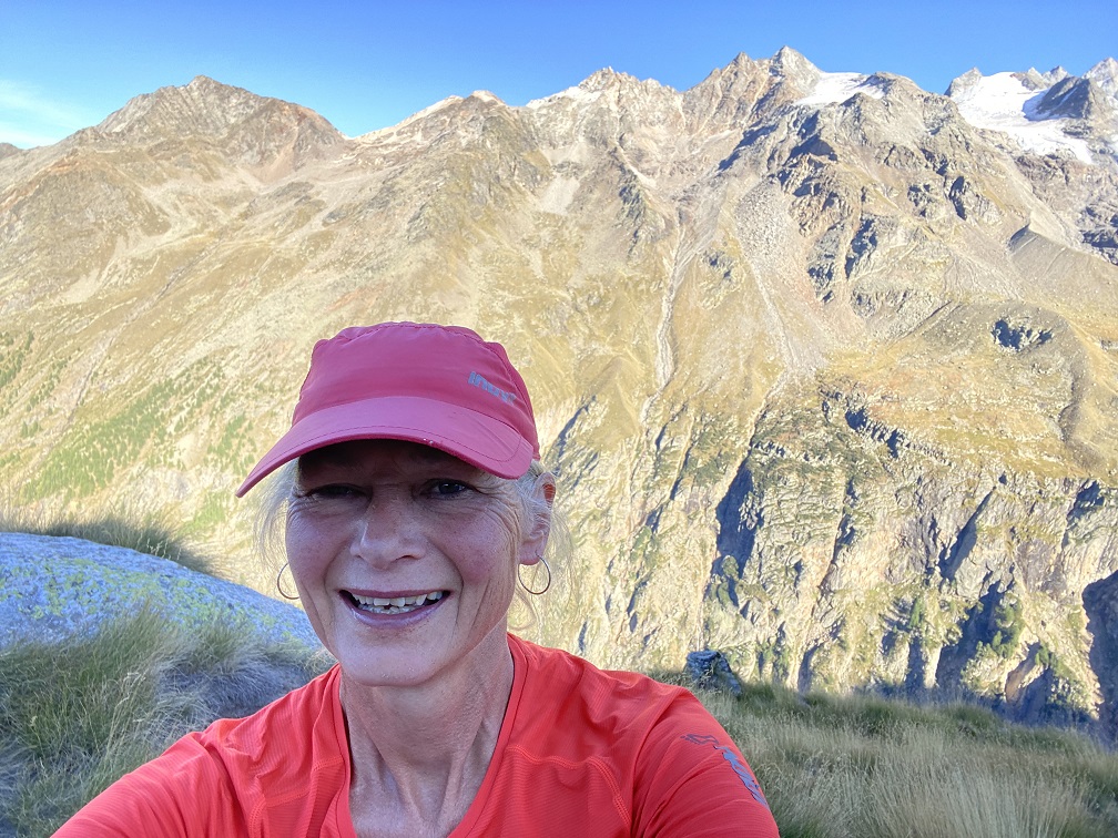 At 7pm we all headed up to the start and I went into the Starters pen. Paul was way up front and I was happy with where I was in the mid pack. The idea was to use the first 100 miles to figure out the navigation, the food and the checkpoints. I think I set off quite eager to be off after a two week taper. It was warm and I was dressed in shorts and a short sleeve t-shirt . I had chosen the Trailfly G 270 shoe in my normal size but had a pair half size up in the drop bag. I had been running a lot in Scotland in these shoes and couldn't fault them. Comfy but with good grip. My rucksack was full of spare clothes, food, some foot care stuff along with a pair of socks. It was due to get cold for two nights and I would only have access to the drop bag on Sunday night if I was on my schedule. I practiced with my Garmin GPSMAP 66sr which I had chosen because it had buttons I could use with gloves, it weighed as much as my Dakota with 2 spare batteries, it had a rechargeable battery and the battery life was 24 hours or so on Expedition mode. I had used it a little in the UK and downloaded the four gpx tracks for the Tor des Glaciers onto it. I also had my Garmin Fenix 6 pro set on Ultra to save battery, with the altimeter and splits showing to help me between checkpoints. For poles I had chosen the Leki Neotrail FXOne Superlite poles with the loops and the foam grip because in 2019 I was taking normal gloves on and off so much that I was worried about losing the pole glove. I also like the hand molded foam bit as I'll have these poles in my hands for a week and comfort is really important.