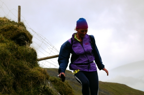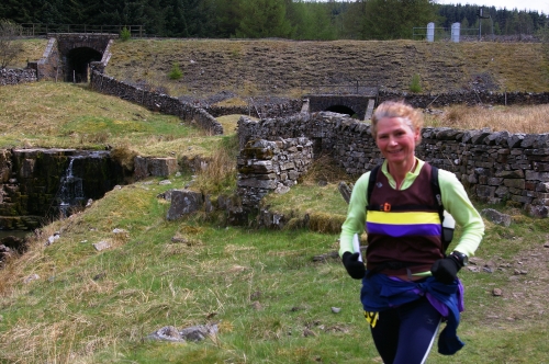 The beans went down well at Dent and I started to find my pace across Blea Moor finding a good line down to Stonehouses. The sun came out on the ascent to Great Knoutberry and running across to Redshaw was warm. A reasonable line to Dodd Fell gained me a few places and remembering the line across to Fleet Moss a few more. A quick stop to fill my container with rice pudding and fruit salad and I was off across Fleet Moss. Its always hard to remember each wall and fence and I'm always glad to reach Middle Fell. Running across to Hells Gap I caught sight of the checkpoint - not as visible as last year and made a beeline for it. Down the horrid stony track to Cray. Cheese and sausages don't really agree with me so I stuck to tea and gels from then on really. Climbing Buckden I couldn't see anyone behind or in front of me and got a little despondent. I had a gel to clear the head - caffeine was needed! That kicked in before Park Rash and when the marshall said I could go on I was very pleased. Up Whernside I bounded - much cheered up and just settling down to the long run in in front of me. I felt lucky to be running in daylight and knew it would gain me time.