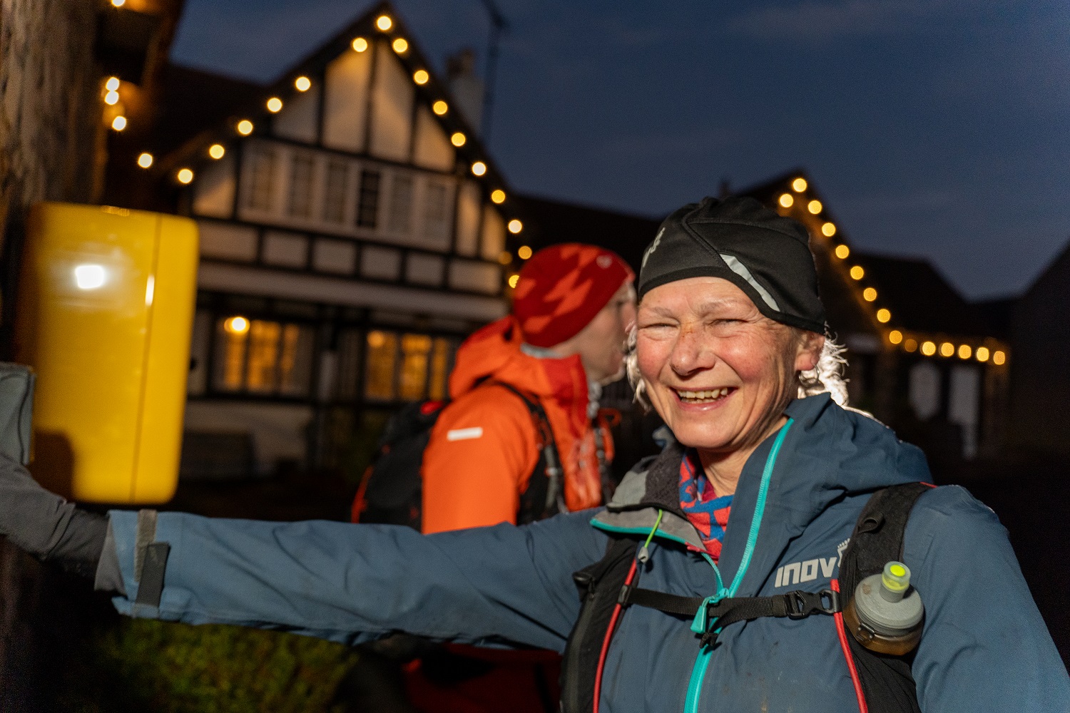 A pretty quick checkpoint turnaround as it was quiet and all the staff very quickly looked after all our needs. I debated socks and must have change three times. The decision being between clean Drymax or already worn, wet Dexshells. Eventually I went with wet, already worn Dexshells. Three bowls of something - I really can't remember what I had! and a thorough kit check and we were heading out into the darkness.