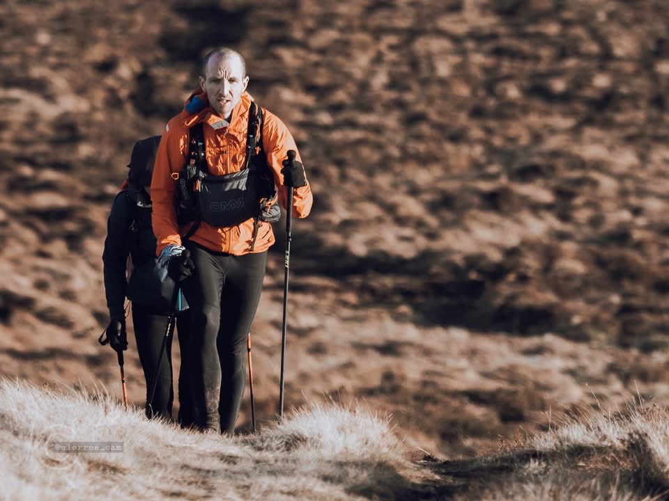 I set off in Inov8 Xtalon Ultras and I had a pair of Inov-8 Trailfly G 270 . I used a pair of Leki Neotrail-FX.One-Superlite throughout as I like the molded soft handgrip and the plain strap. I was also using a Garmin GSMAP 66sr for navigation and a Garmin Fenix 7S Pro for time keeping and my own tracking of the race. The pack I used was the Inov8 Racepac 20 (but my test pack which has chest straps and not elastic). I had the support of Ultra Light Outdoor Gear.co.uk in 2024 which had helped immensely in getting the three main sleeping items (sleeping bag, sleeping mat and sleeping bag cover / bivvy bag) for a reasonable price and very compact. I was pleased with how everything went into the pack and how it didn't feel too heavy. The reduction in calories we had to carry from 3000 to 1500 made a big difference to weight although I calculated I had about 1800 calories and intended to eat it all! The size of the First Aid kit was annoyingly huge and largely going to be unused.