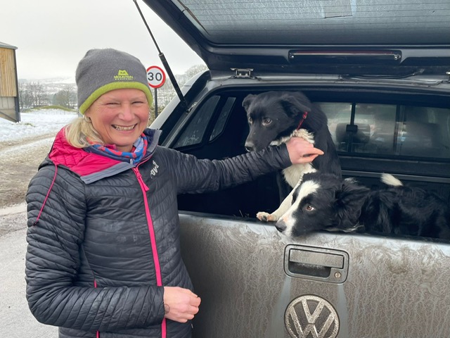 My pre-race logistics were better than 2024 and after slithering our way down the five miles of track and road to escape Pinwherry which was a bit hairy, I then dropped my van at Kirk Yetholm . Then Steve drove me (and the dogs) to Hardraw on the Sunday. We luckily have friends who now live 15 minutes away from Hardraw and had invited us to stay on the Sunday night. Apart from not sleeping very well for two nights before the Spine the pre-race logistics and planning went well. Registration was a breeze and very quick and it was lovely to catch up with Nikki Lygo who took this photo of me. There was, of course, the usual worrying over whether you've got the required level of kit especially the new First Aid kit (which I also think is ridiculous) but the process was slick and we were at our friends house by 3pm. A night of faffing and eating and then a restless night with Bruce doing his best to make it worse by barking intermittently.